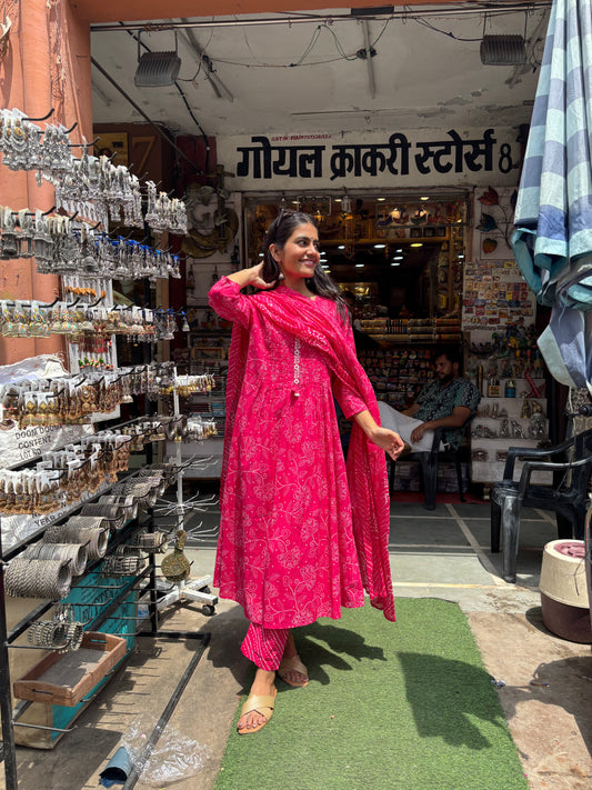 Ajrak Print Alia Cut Cotton Anarkali Suit Set