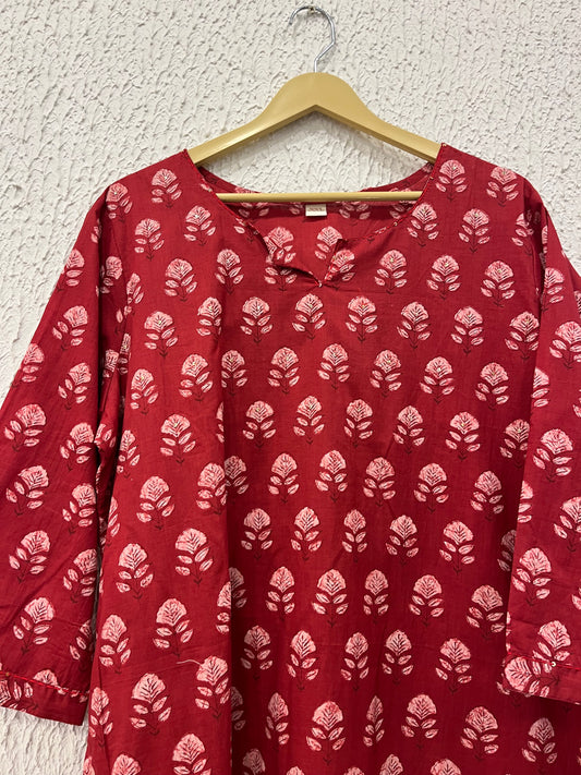 Sold outRed Floral print cotton Kurta.