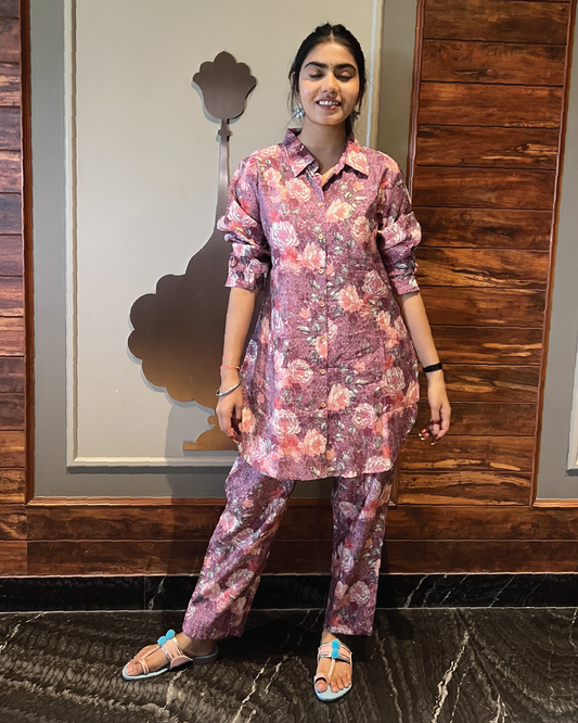 Purple Foral Muslin Co-ord Set