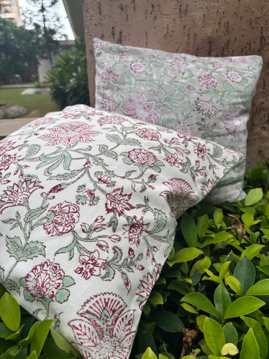 White Canvas Hand Block Printed Pure Cotton Cushion Cover
