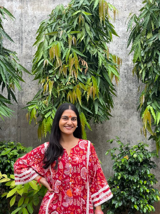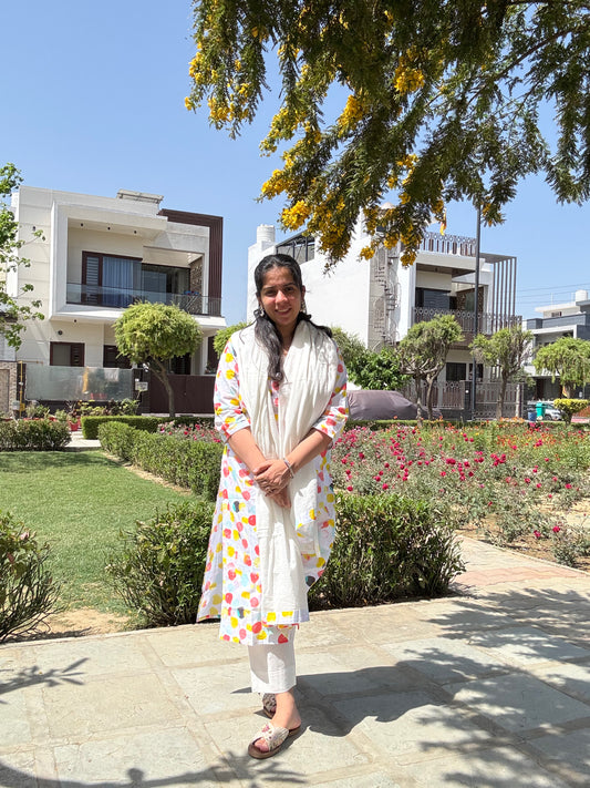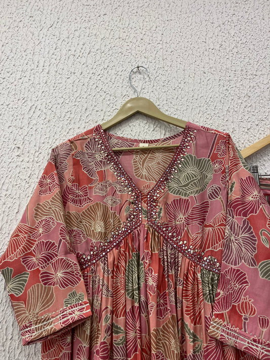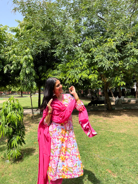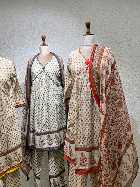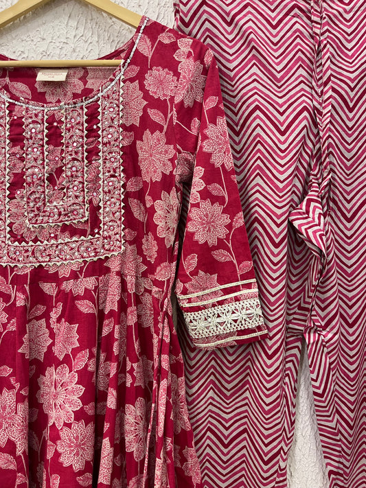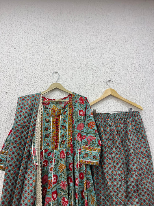 Printed Cotton Anarkali Suit Set with cotton printed dupatta