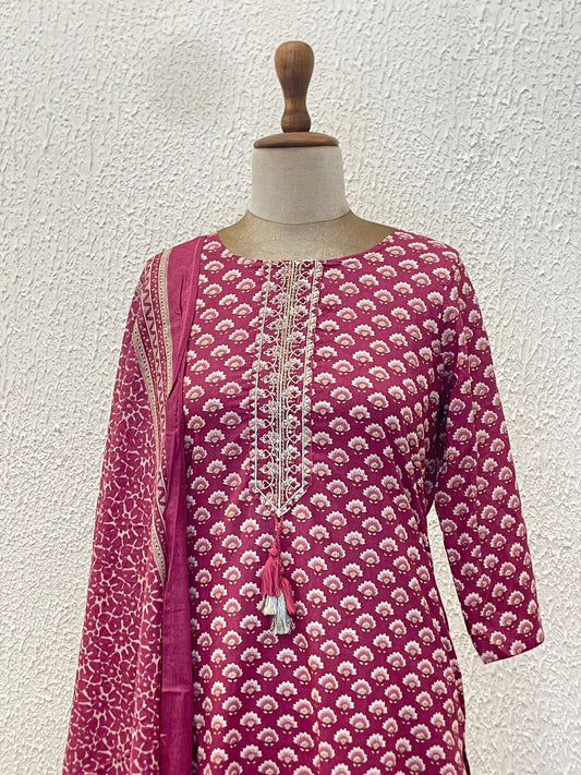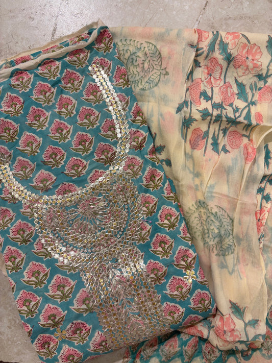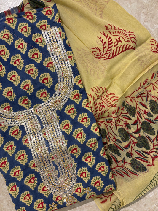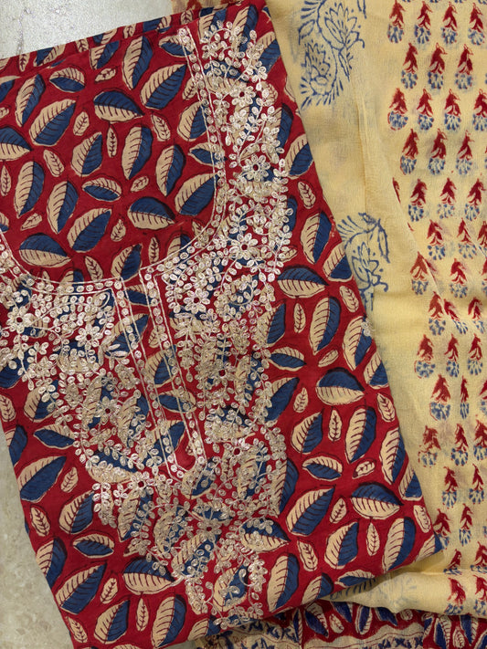 Premium Embroidered Cotton Block Printed Unstitched Suit Set