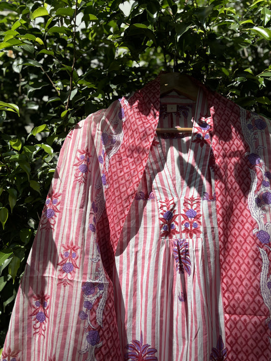 Pink Stripes Floral Printed Cotton Straight Suit Set