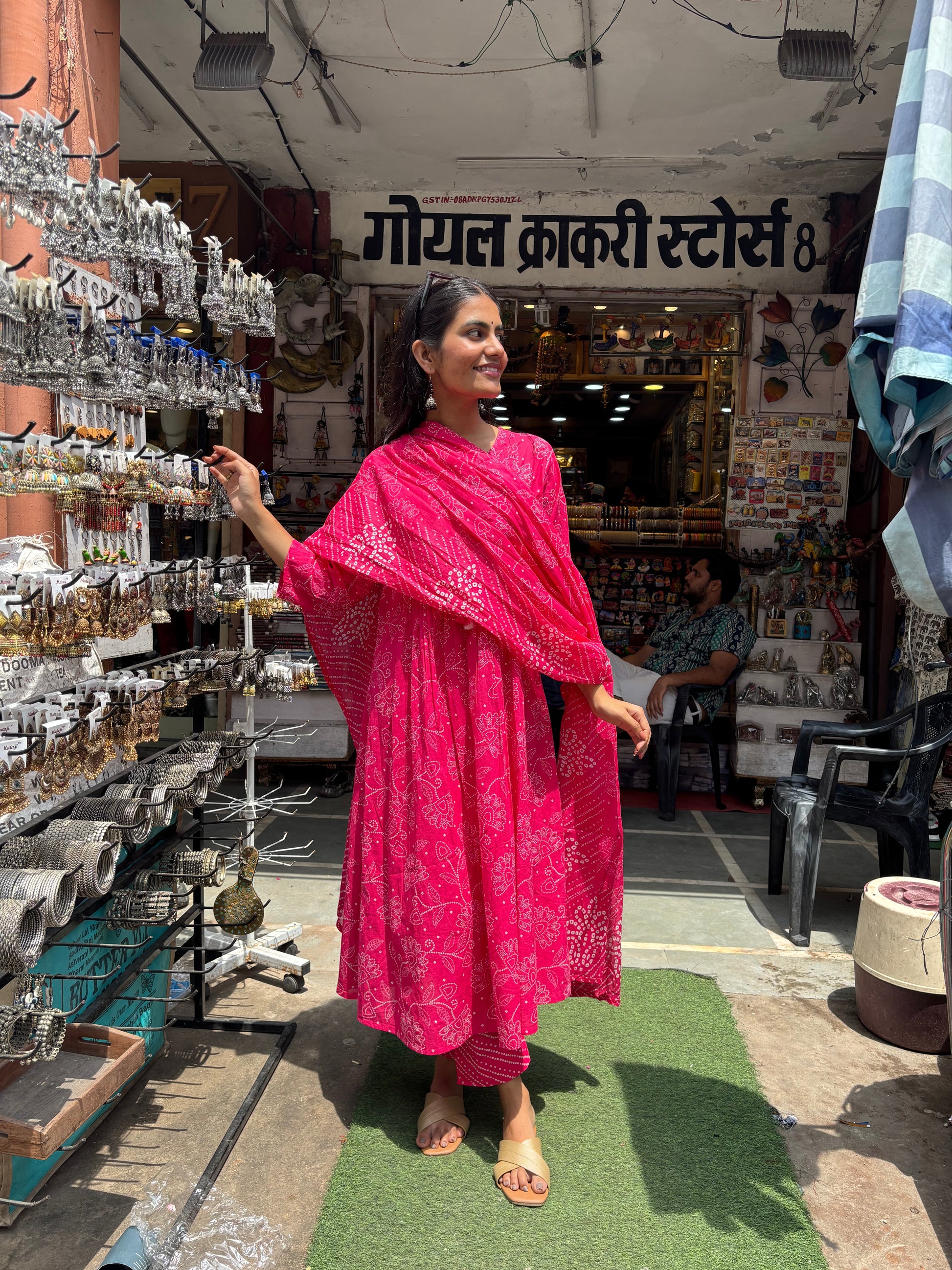 - Paired with an Bandani print mul cotton dupatta for a classic touch.