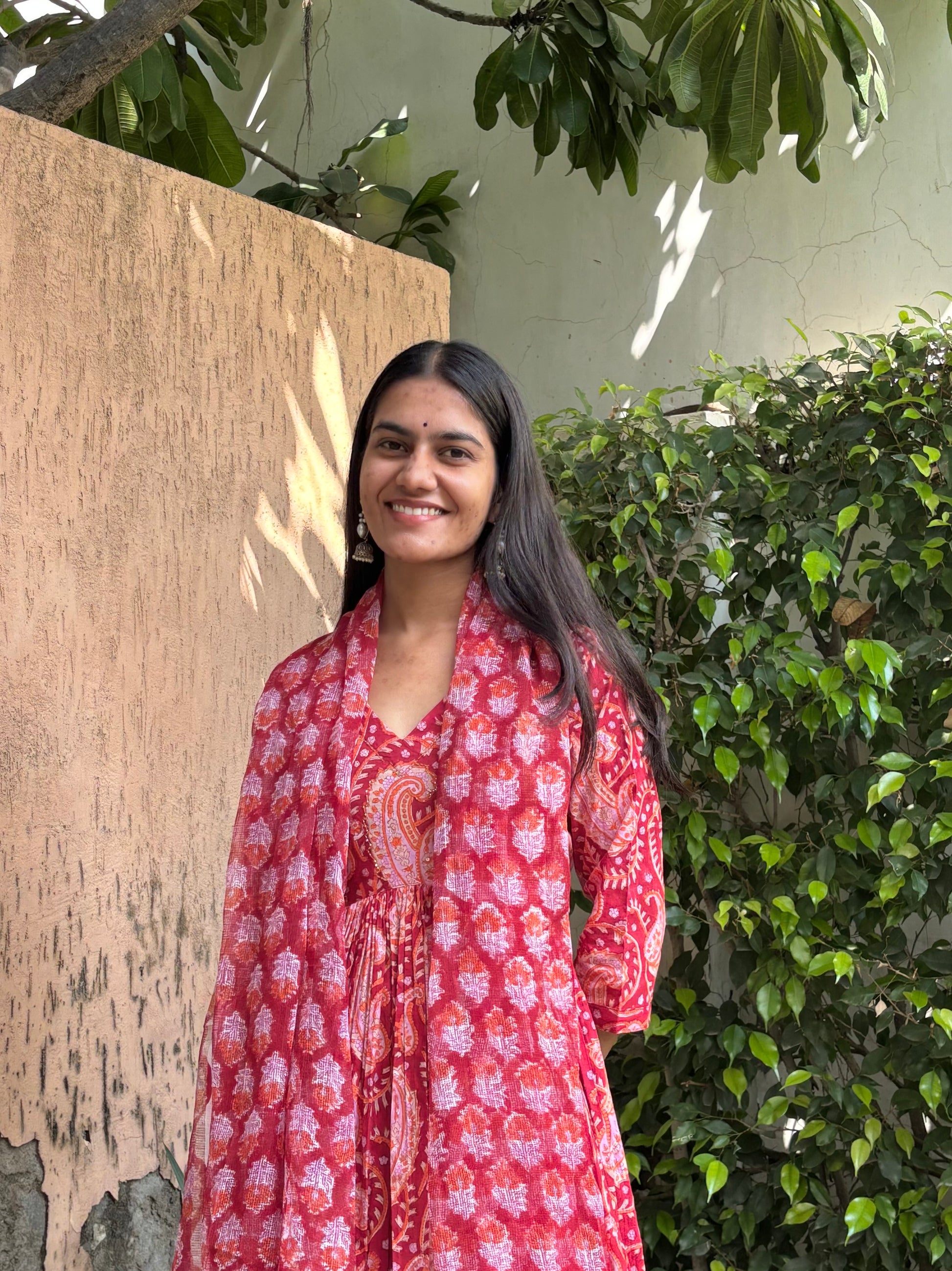 Red Handblock Printed Cotton Anarkali
