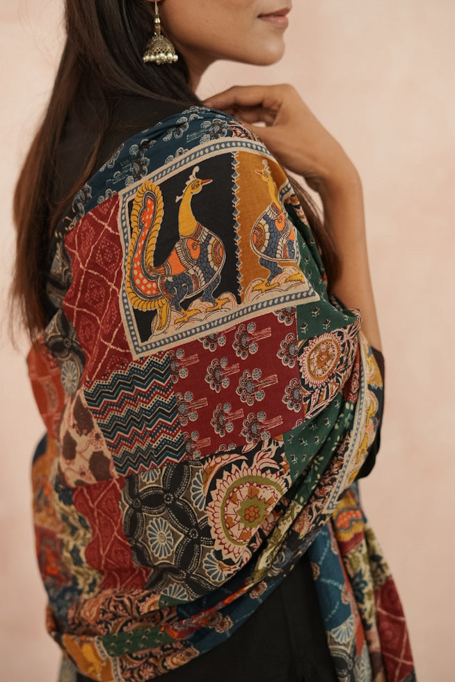 Paired with comfortable straight pants with an elasticated waistband, and styled with a striking Ajrak printed dupatta — a perfect fusion of contemporary design and traditional charm.
